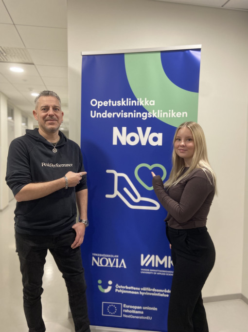 NoVa-kliniken är en undervisnings-/praktikklinik. Alla över 18 år är välkomna och syftet med kliniken är att erbjuda “lågtröskel-hjälp” till invånare i Österbotten (t.ex. stöd för psykisk hälsa, råd om livsstil, mätning av blodtryck eller blodsocker, hjälp med digitala tjänster, rådgivning) samtidigt som studerande inom vård och socialt arbete får ett praktiskt träningstillfälle i verkliga patientmöten.